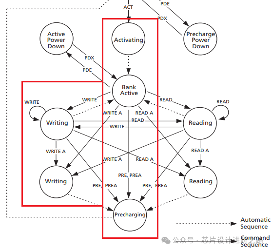 預充電命令確保所有數(shù)據(jù)傳輸完成,并準備Bank進入下一次激活狀態(tài)。