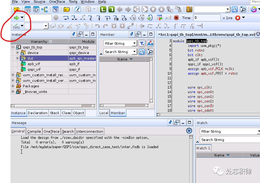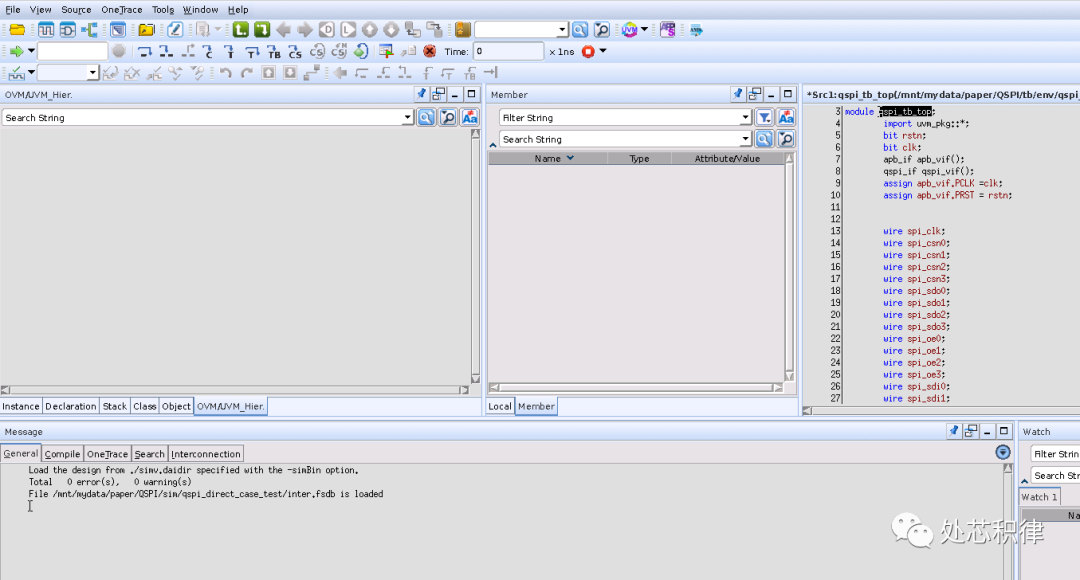 我們 編譯完之后,然后開(kāi)始跑仿真。跑仿真的時(shí)候會(huì)跳出下面verdi的界面。