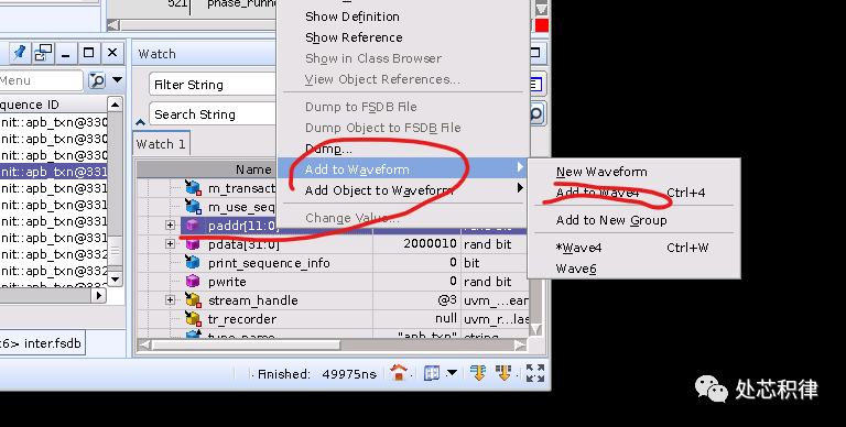 下面我們看下 uvm component里面的信息,通過(guò)指定一個(gè) component 然后右擊 add to waveform 就可以看 component的信息。