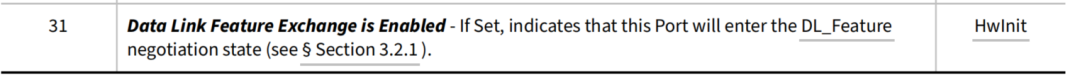 如果 Remote Data Link Feature Supported Valid 為0,則從接收到的Data Link Feature DLLP中提取Feature Supported field,并且將Data Link Feature status寄存器Remote Data Link Feature Supported Valid bit置1.