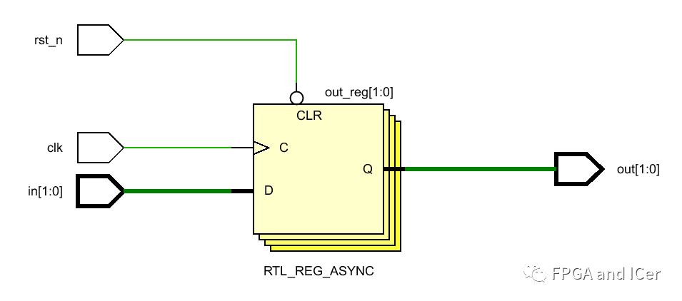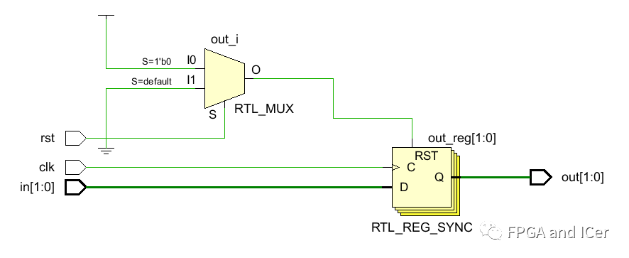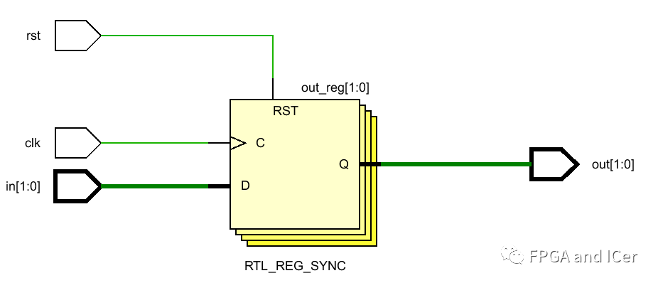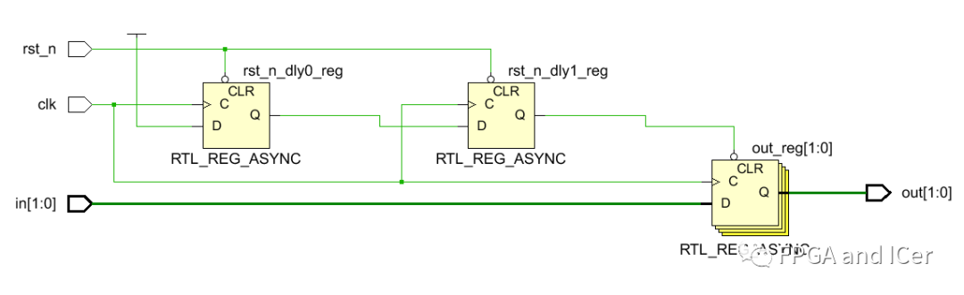 在使用vivado RTL分析后對(duì)應(yīng)的電路結(jié)構(gòu)如下,從結(jié)構(gòu)圖中可以看到,第二級(jí)的輸出寄存器沒有添加相關(guān)復(fù)位信號(hào)控制邏輯資源。