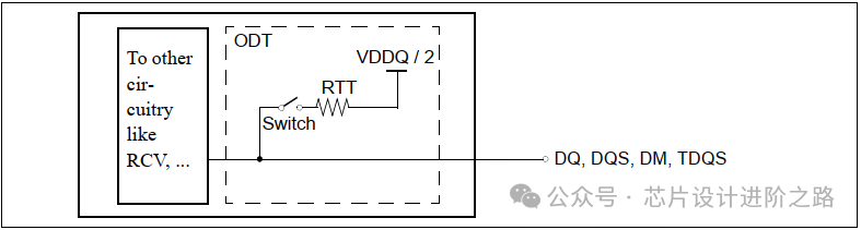 為了減少這種影響,需要在鏈路末端添加終端電阻以吸收反射波。在早期的DDR技術(shù)中,這些終端電阻通常被放置在PCB板上,但由于多種因素,其效果并不理想。因此,在DDR2技術(shù)中,終端電阻被集成到了DDR顆粒內(nèi)部,這種技術(shù)被稱為On-Die Termination(ODT)。ODT指的是在硅芯片,即DDR顆粒內(nèi)部的終端電阻。