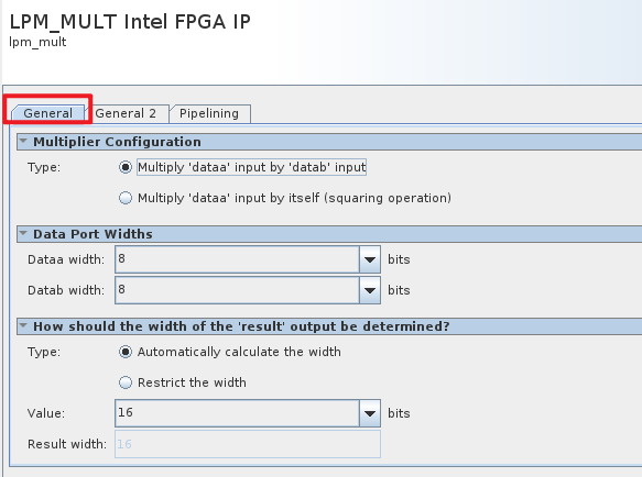 本案例中LPM_MULT Intel FPGA IP 核是一個兩個輸入數(shù)據(jù)乘法器,兩個相乘數(shù)據(jù)作為輸入,所得結(jié)果作為輸出。