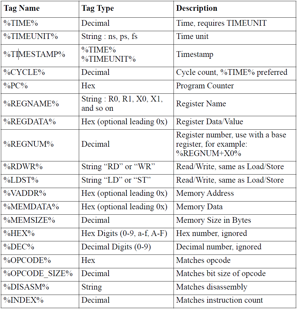 -i tarmac.log:該命令指示的是輸入的log文件,該log文件記錄了仿真時(shí)的各種狀態(tài),例如: