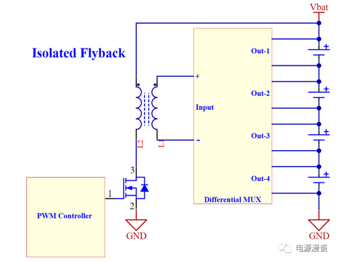 ? ? ? ? 電源的輸入端可以是電池串,也可以是單節(jié)電池,輸出端設(shè)計為可選擇輸出的多路輸出電源。這種方法,可以用于一些大功率電池應(yīng)用中。接下來,我們會簡單介紹兩種大功率電池平衡的例子,一種是混動車中的48V和12V電池平衡,另一種是5G備用電池中的,鉛酸電池和鋰電池的電池平衡。
