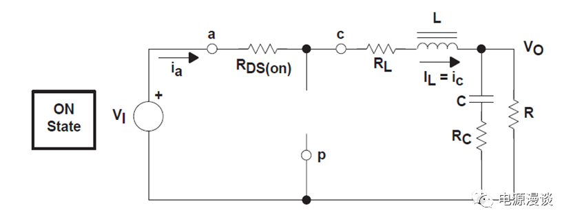 圖2 BUCK電路CCM模式的主管導(dǎo)通狀態(tài)