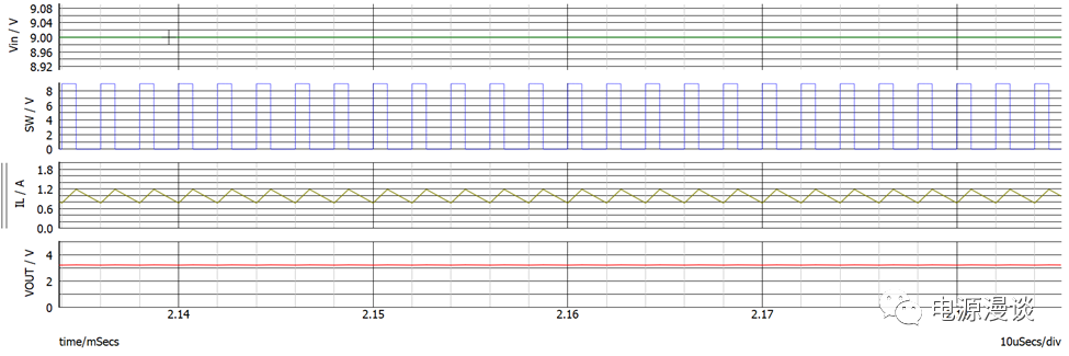 在圖10中給出了BUCK電路的典型參數(shù),如開(kāi)關(guān)頻率,輸入電壓,輸出電壓,功率等。