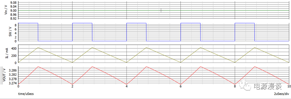 在穩(wěn)定狀態(tài)時(shí),一個(gè)開(kāi)關(guān)周期內(nèi),電感電流的增加量和電感電流的減小量是一定相等的,不然就無(wú)法進(jìn)入穩(wěn)定狀態(tài),這個(gè)電流在一個(gè)周期內(nèi)的變化也稱(chēng)為紋波電流。