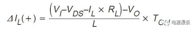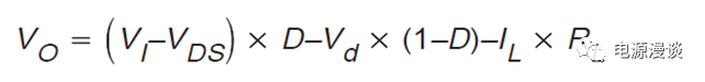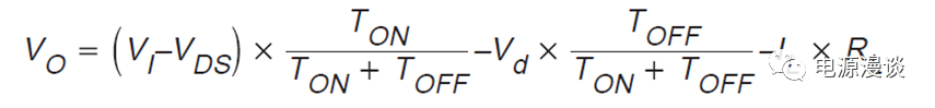 忽略主開(kāi)關(guān)的導(dǎo)通壓降,續(xù)流管的導(dǎo)通壓降,電感的寄生串聯(lián)電阻,則我們可以簡(jiǎn)化為如下等式,如公式6,所示。