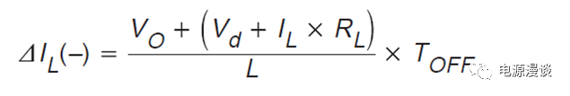 同樣的,當(dāng)主開(kāi)關(guān)Q1關(guān)斷時(shí),根據(jù)施加在電感兩端的電壓,及關(guān)段時(shí)間TOFF,就可以求得這段時(shí)間的電感電流的減小量,如公式3,所示。
