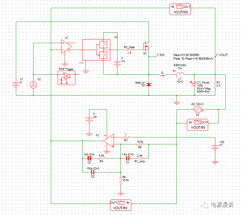 上一部分我們對環(huán)路特性進行了詳細的計算,這一部分,我們基于上一部分計算的參數(shù)在SIMPLIS中進行閉環(huán)仿真。