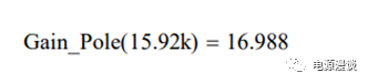 如圖5所示,我們計(jì)算出極點(diǎn)轉(zhuǎn)折頻率為15.92k,直流增益為20db,因?yàn)槭菍?duì)數(shù)坐標(biāo),所以直流增益為10倍。