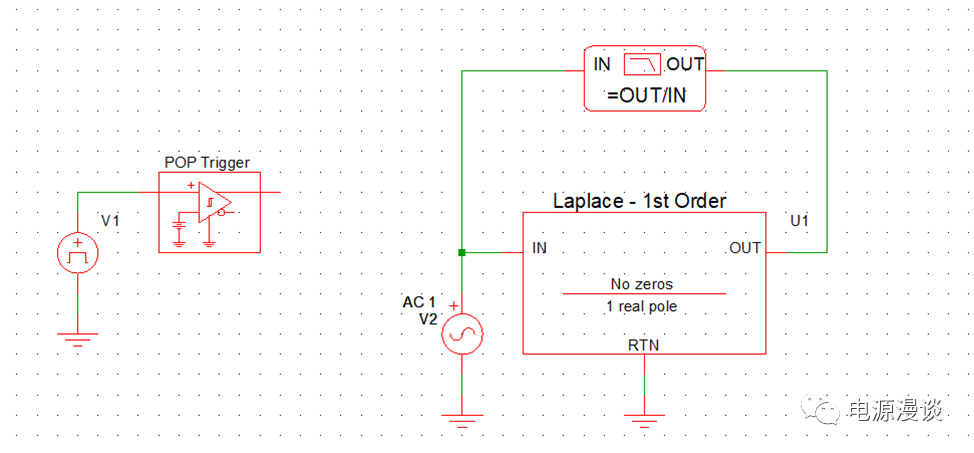 在SIMPLIS中,我們采用Laplace的數(shù)學(xué)模型去做一階極點(diǎn)仿真,原理圖如圖13所示。