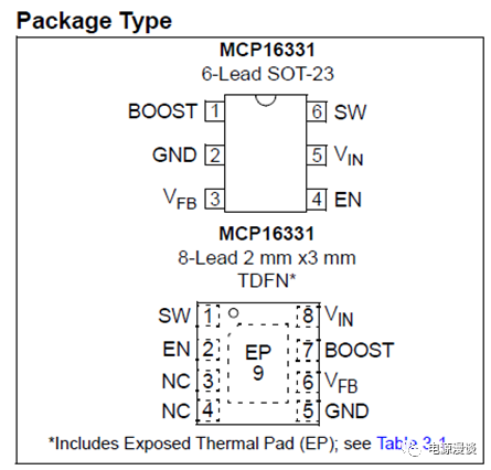 圖3給出了典型的封裝為TDFN-8的2*3mm或者SOT-23-6的封裝,這是相對比較小的封裝。