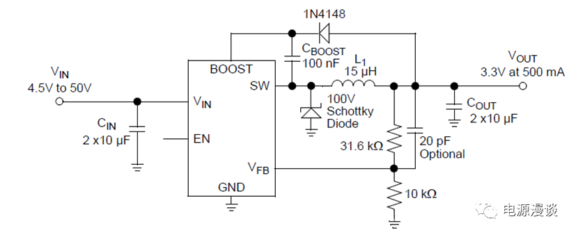 圖4 典型輸出電壓3.3V時的參考原理圖