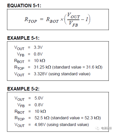電氣規(guī)格上顯示,輸出反饋參考電壓為0.8V,所以可以根據(jù)此電壓和分壓電阻計(jì)算輸出電壓,如圖7所示。