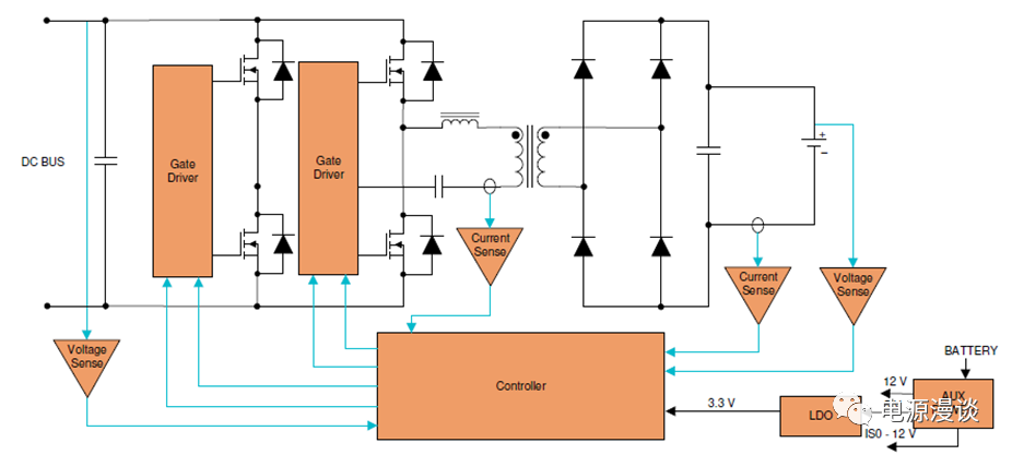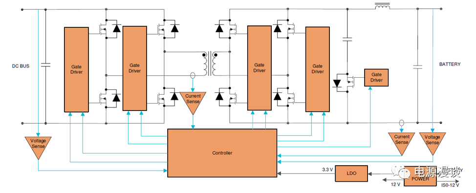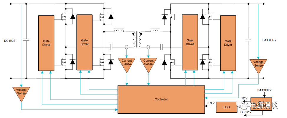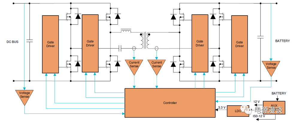 這個(gè)變換器良好的雙向功率控制特性使得它合適作為電池和高壓直流母線之間雙向DC/DC電路。