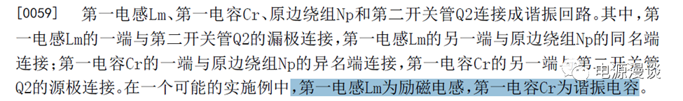 由圖5-9說明可知,諧振電路由諧振電感Lm和諧振電容Cr,變壓器原邊Np組成,諧振電路和第二開關(guān)Q2構(gòu)成諧振回路,不管主開關(guān)是接地還是不接地的情況都是這樣。