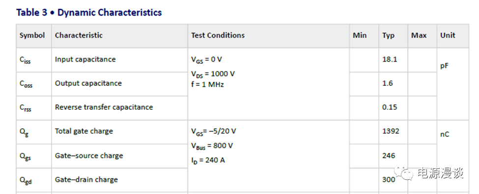 從圖16可知內(nèi)部SiC mosfet的典型寄生電容參數(shù),及對(duì)應(yīng)的電荷參數(shù)。