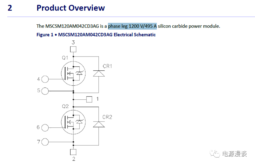 Phase Leg所用的是1200V,495A的SiC模塊,由圖可知,內(nèi)部的SiC mosfet并聯(lián)了SiC diode,由上下兩個(gè)SiC mosfet組成SiC半橋模塊。