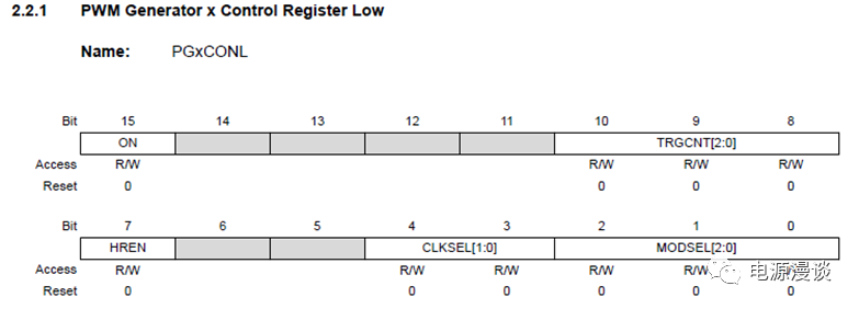 圖2 PWM控制寄存器PGxCONL