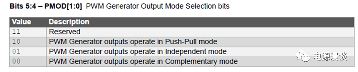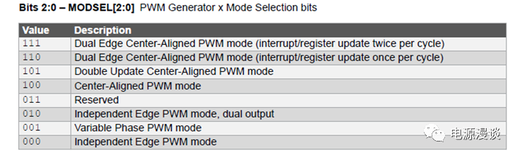 一般來說,通過上述PGxCONL控制寄存器設(shè)定相應(yīng)PWM模塊的內(nèi)部運(yùn)行模式。
