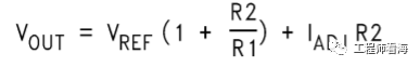 另一種方案是輸出可調,具體是通過外接匹配電阻來控制其輸出電壓,這個優(yōu)點是可以根據我們的需求,設置匹配電阻,進而控制其輸出電壓,比如下圖,輸出電壓和電阻的關系可以通過下面公式得到。