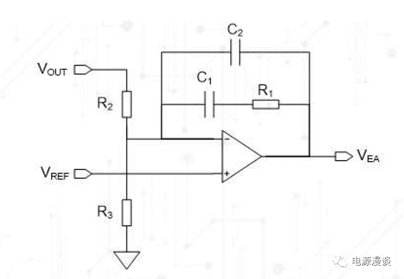 從圖4上所計算出的小信號頻域特性參數(shù)來看,峰值電流模式下BOOST電路是一個一階環(huán)節(jié),它只需要一個二型補償器就可以進行補償。具體來看,其低頻增益較低,且沒有積分特性,那么我們需要在低頻下增加一個極點,同時右半平面零點和ESR零點比較接近,二者相位有一定的抵消作用,因此我們在此頻率之前加一個高頻極點進行高頻分量衰減,同時補償器系統(tǒng)需要將系統(tǒng)主極點作用進行抵消,而主極點是和負載關(guān)系緊密的,所以我們這里基于一定的負載進行設(shè)計,實際應(yīng)用中需要考慮整個負載范圍的主極點作用。