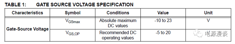 有些規(guī)格書不像Si mosfet一樣指定應(yīng)用的VGSon和VGSoff,意味著不同的應(yīng)用可以選擇不同的驅(qū)動(dòng)電壓值。