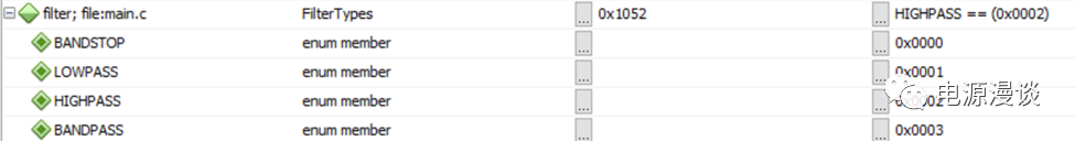 將枚舉變量filter賦值一個常數(shù)標(biāo)簽,HIGHPASS,我們在調(diào)試結(jié)果中查看其值。