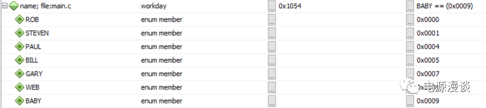 圖14 調(diào)試代碼查看枚舉標(biāo)簽常數(shù)值