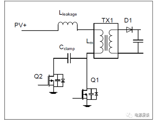 光伏微逆變器引入了一個(gè)有源箝位電路,它本質(zhì)上是無(wú)損吸收電路,漏感尖峰被箝位電容箝位,這些殘存能量存儲(chǔ)在箝位電容中,這個(gè)能量之后就會(huì)被電路傳遞到副邊,重新利用這部分能量供給負(fù)載。如果正確的設(shè)計(jì),有源箝位電路也可以對(duì)反激MOSFET提供ZVS開(kāi)關(guān),減小開(kāi)關(guān)損耗和提升效率。