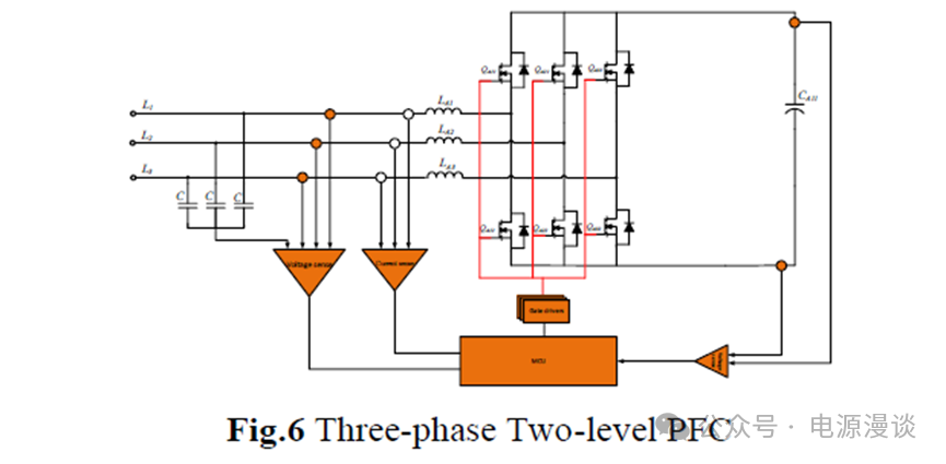 在大功率電源應(yīng)用中,三相PFC整流器必不可少,今天討論一下三相PFC拓?fù)浞矫娴膯栴},三相六開關(guān) PWM 整流器或三相兩電平PFC,如 圖 6所示,它 具有非常簡(jiǎn)單的電路拓?fù)浣Y(jié)構(gòu), 所以易于控制,主要特點(diǎn)是它方便雙向大功率流控制,并且可以以合理的效率下實(shí)現(xiàn)高功率因數(shù),在一些雙向功率控制應(yīng)用中應(yīng)用廣泛。