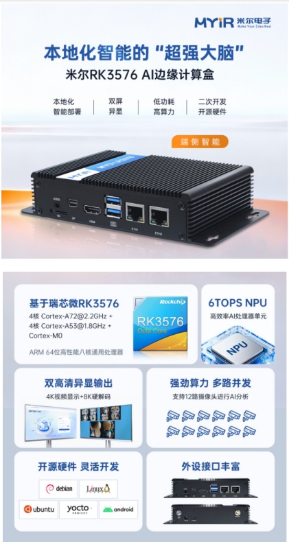在人工智能與邊緣計算深度融合的浪潮中,本地化智能需求正重塑產(chǎn)業(yè)格局。米爾電子推出的RK3576邊緣計算盒,具備高算力、低功耗與強擴展性,憑借其卓越的硬件架構(gòu)與多場景適配能力,正成為推動工業(yè)視覺、工程機械及智慧城市等領(lǐng)域智能化產(chǎn)業(yè)升級的有力工具。