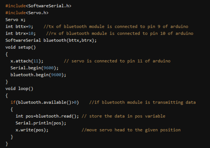 android應(yīng)用程序向藍(lán)牙模塊發(fā)送數(shù)據(jù)包。藍(lán)牙模塊通過串行通信將此數(shù)據(jù)包發(fā)送到Arduino Uno。Arduino Uno被編程為根據(jù)數(shù)據(jù)包的值為伺服電機(jī)產(chǎn)生控制信號(hào)。為了更好地理解,這里有一個(gè)流程圖。