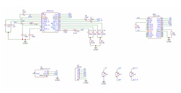對(duì)于組裝,因?yàn)槲抑饕褂玫氖荰HT組件,可以手工焊接,此外,只有ESP8266, 3V3穩(wěn)壓器和PT2315使用SMD焊盤,在那里你可能會(huì)遇到一些問(wèn)題。盡管如此,我總是建議先焊接SMD,然后移動(dòng)到tht,最后到頭部部分。這樣,用最少的時(shí)間和精力,你可以焊接這塊板。所有到FILES: GERBER/BOM/CPL的鏈接在這里。