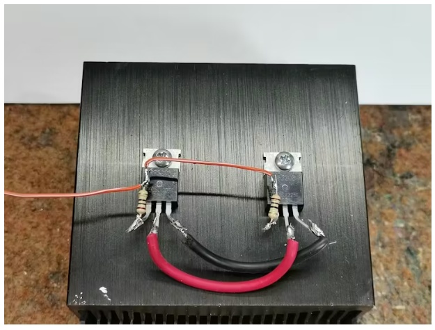 ?然后是主要部分,這是一個(gè)高壓發(fā)生器,或者說(shuō)是一個(gè)驅(qū)動(dòng)高壓變壓器的驅(qū)動(dòng)器-它是一個(gè)具有一定頻率和占空比的矩形信號(hào)發(fā)生器,其輸出端有一個(gè)功率MOSFET,安裝在一個(gè)大型散熱器上。