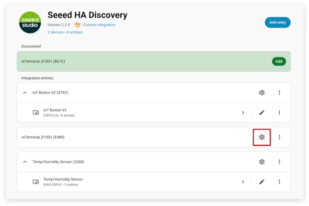如果沒有自動出現(xiàn)(在復(fù)雜的網(wǎng)絡(luò)環(huán)境中偶爾會出現(xiàn)這種情況),請手動添加:單擊“add Integration”,搜索“Seeed HA Discovery”,然后輸入設(shè)備的IP地址。您可以在路由器的管理頁面中找到IP。