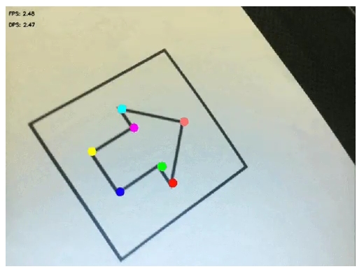 這個腳本檢測箭頭的七個頂點,并用不同的顏色將它們可視化。您需要在您自己的腳本中更改rpk AI模型文件的路徑。