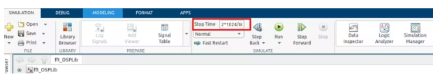 我們可以進(jìn)行模擬。由于我們已將采樣時(shí)間設(shè)置為 1/600e6,所以可能需要在經(jīng)過幾組包含 1024 個(gè)樣本的數(shù)據(jù)窗口后停止模擬。我以 2 為例進(jìn)行說明(2*1024/600e6)