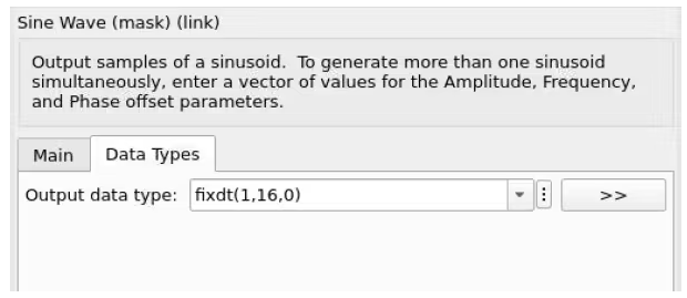 在“數(shù)據(jù)類型”選項(xiàng)卡中,我將輸出設(shè)置為 16 位定點(diǎn)數(shù)。