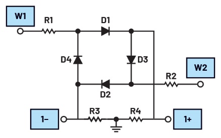 環(huán)形調(diào)制器中二極管的方向不得與二極管橋式整流器的方向混淆。它們可能呈現(xiàn)類似的環(huán)形,但環(huán)形調(diào)制器的所有二極管都朝順時針或逆時針方向,而橋式整流器的二極管則朝左或右。