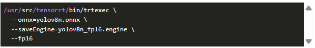 使用 trtexec 工具將 ONNX 模型轉(zhuǎn)換為高度優(yōu)化的 TensorRT 引擎(對(duì)于 Orin Nano 來說,建議使用 FP16 精度)。