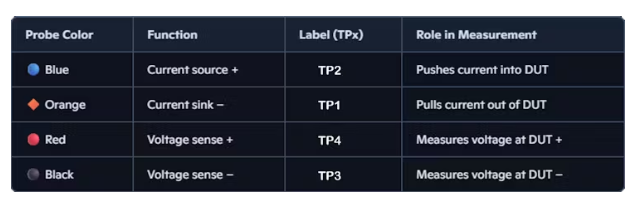 這消除了引線電阻和接觸誤差,從而能夠?qū)崿F(xiàn)精確的毫歐級測量。
