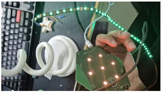 但是,在這里,“沒有計劃能在與敵人初次接觸時幸存下來”這句話的含義得到了完美的體現(xiàn),因為我的 PCBWay 貨物由于海關(guān)原因被聯(lián)邦快遞滯留了。所以不得不臨時應(yīng)變。于是我查看了我的庫存,找到了一些舊的定制 PCB 板,我用它們作為我于 2024 年 11 月初和 2025 年 4 月制作的“艾拉警報”項目的概念驗證原型。從技術(shù)上講,我正在將廢品變成黃金。所以它配備了 esp32 和 LED。但我認為僅靠這些還不夠,因為這次競賽我還想保留那些關(guān)于調(diào)皮和乖巧的清單、在圣誕樹下尋找禮物的完整體驗。所以這就是我最終的計劃。