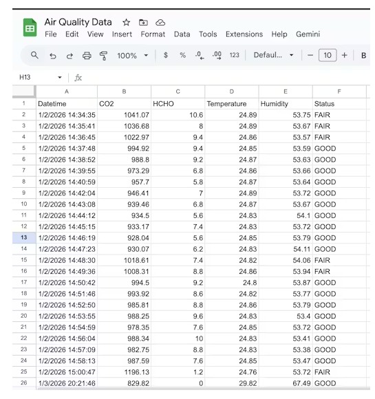 這就是谷歌表格的“秘訣所在”。當(dāng)小 ESP32C5 跳轉(zhuǎn)到谷歌腳本的網(wǎng)址時(shí),谷歌會(huì)以 302 重定向的方式做出響應(yīng)。如果沒(méi)有這一特定的代碼行,小 ESP32C5 將會(huì)在重定向處停止,數(shù)據(jù)也就無(wú)法真正傳送到您的電子表格中。此功能會(huì)將您的 CO2、HCHO、溫度和濕度值打包成一個(gè)單一的網(wǎng)址字符串,并“訪問(wèn)”該鏈接以記錄數(shù)據(jù)。