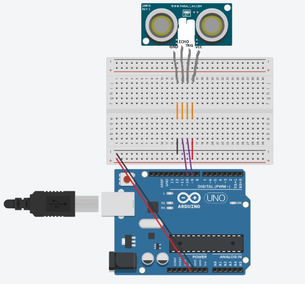 ?Arduino 向超聲波傳感器的“觸發(fā)”引腳發(fā)送一個(gè)短脈沖。