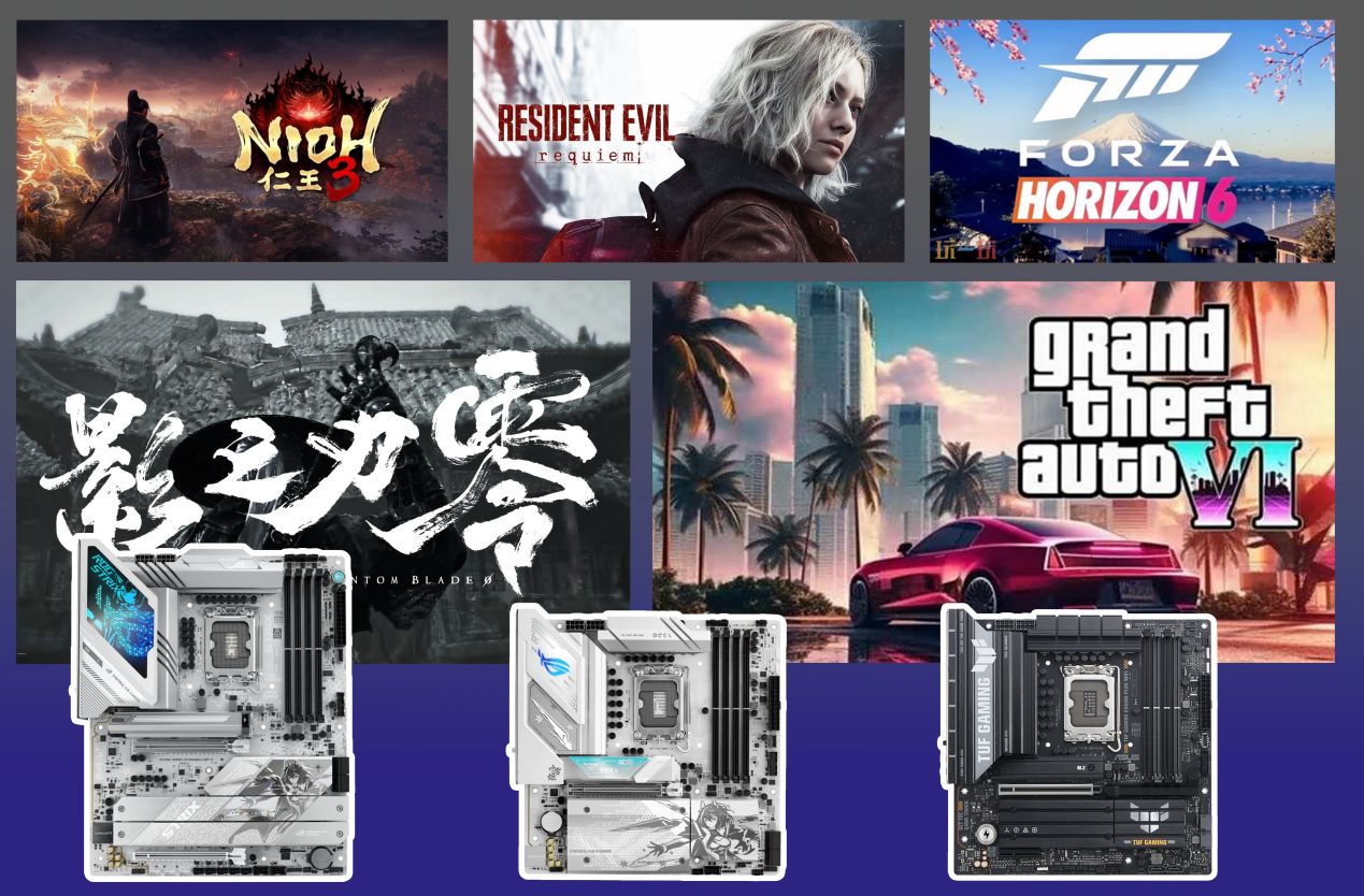 2026年的游戲盛宴即將開始,各大廠商都將拿出自己的看家之作:動作角色扮演游戲《仁王3》以虛幻5引擎重塑戰(zhàn)國魔幻美學;《生化危機9:安魂曲》回歸系列生存恐怖本源,將玩家置于孤島絕境;《極限競速:地平線6》飛馳日本,以絕美風景征服眼球;國產之光《影之刃零》以獨創(chuàng)“水墨朋克”美學驚艷世人,將中國傳統(tǒng)武俠意境與凌厲動作完美融合;《GTA6》攜現(xiàn)代版罪惡都市歸來,復雜角色塑造與自由冒險玩法再掀熱潮。一臺性能強悍的電競主機是暢爽體驗游戲的基礎,這里為玩家推薦三款華碩Z890/B860主板,分別是華碩ROG Z890吹雪主板(ROG STRIX Z890-A GAMING WIFI S)、華碩ROG B860小吹雪主板(ROG STRIX B860-G GAMING WIFI S),以及華碩B860重炮手WIFI主板(TUF GAMING B860M-PLUS WIFI)。憑借一系列電競優(yōu)化技術,再搭配Intel酷睿Ultra 200S處理器,可為玩家?guī)韮?yōu)異游戲體驗。