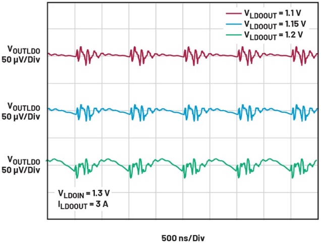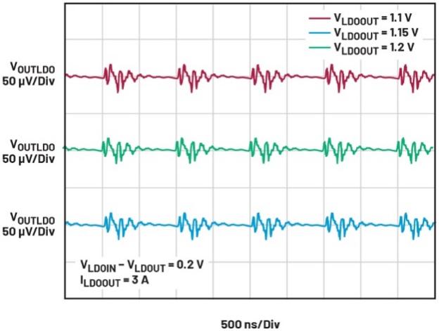 如上所述,當LDO與VIOC功能及兼容的開關(guān)穩(wěn)壓器配合使用時,可形成一個始終維持最佳輸入輸出電壓差的系統(tǒng),從而不僅顯著降低噪聲,實現(xiàn)高PSRR,還能提升性能。