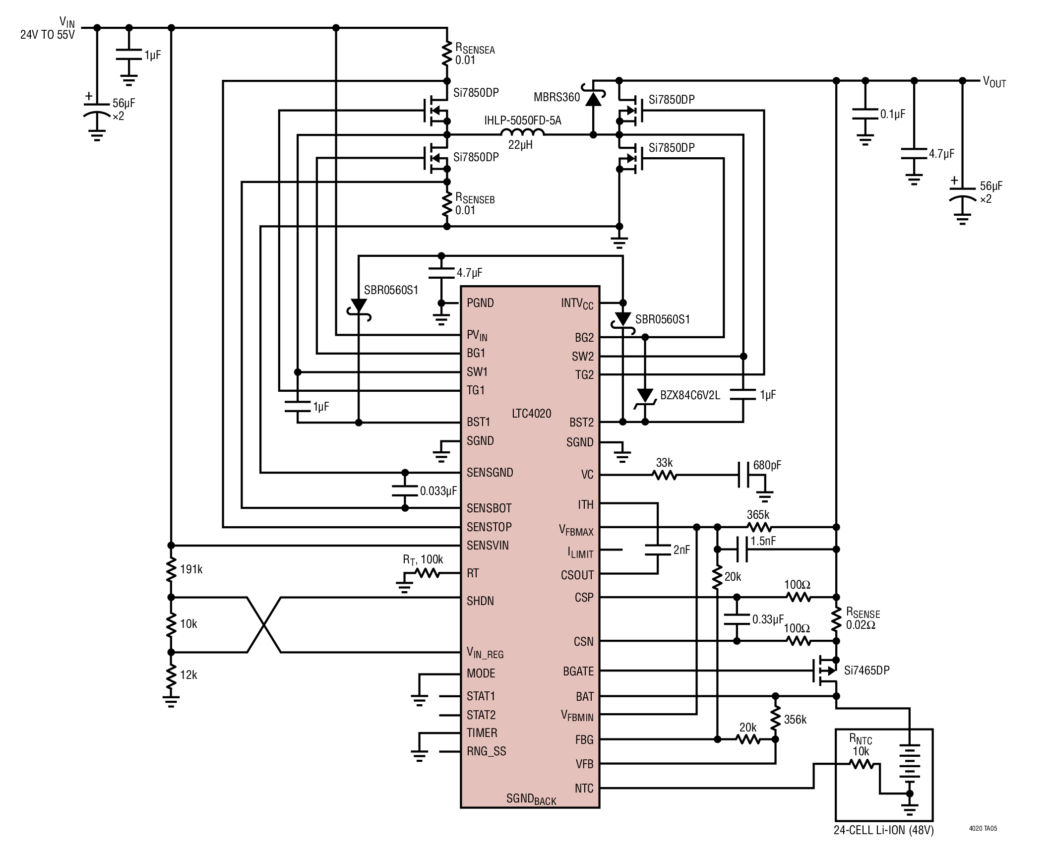 LTC4020 24V~55V 輸入至 24 節(jié)離子電池 PowerPath 充電器
